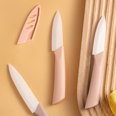 Stilig og ergonomisk design: Denne kniven har et moderne design med et komfortabelt, ergonomisk håndtak som passer perfekt i hånden. Den livlige rosa fargen gir et unikt preg til kjøkkeninnredningen din.