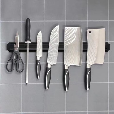 Sterk magnetisk kraft: Den kraftige magnetstripen holder kniver, kjøkkenredskaper og metallredskaper sikkert på plass, og hindrer dem i å skli eller falle.