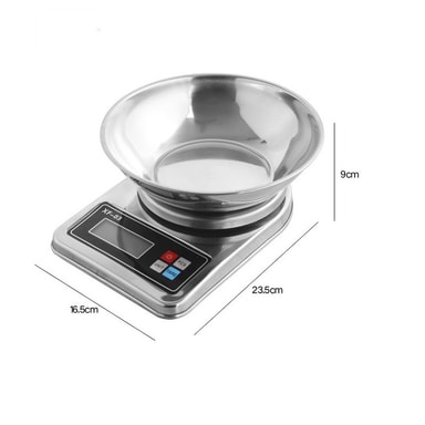 Denne digitale kjøkkenvekten i rustfritt stål er et uunnværlig verktøy for ethvert kjøkken, og gir presise målinger for alle dine matlagings- og bakebehov. Med en kapasitet på 3 kg og en nøyaktighet på 0,1 g, kan du være sikker på at oppskriftene dine blir perfekte hver gang. Den er ideell for å veie ingredienser for baking, tilberede porsjonskontrollerte måltider eller måle kaffe og krydder. Den elegante designen i rustfritt stål passer sømløst inn i enhver kjøkkeninnredning, og den kompakte størrelsen gjør den enkel å oppbevare. LCD-skjermen med hvitt bakgrunnslys gir klare og lettleste målinger, selv under dårlige lysforhold. Denne vekten er også utstyrt med en tarafunksjon, slik at du kan nullstille vekten for å måle flere ingredienser i samme beholder. Den er perfekt for både nybegynnere og erfarne kokker som krever nøyaktighet og pålitelighet i sine kulinariske bestrebelser. Bruk den til å veie mel, sukker, krydder, oljer og andre ingredienser med presisjon, og oppnå konsistente resultater i alle dine oppskrifter. Den er også ideell for å veie smykker, medisiner eller andre små gjenstander som krever nøyaktig måling.