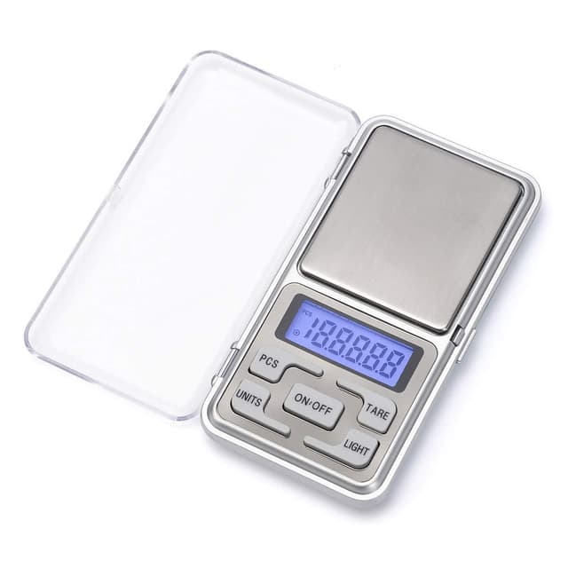 Den lille skalaen kan brukes til mat, salater, perler, mynter, smykker, gull, jernvarer, krydder osv. Vekten er laget av slitesterkt rustfritt stål og kommer med et gjennomsiktig plastlokk som beskytter mot støv og sørger for at ingen knapper er presset ved en feiltakelse. Vekten kalibrerer seg automatisk og håndterer alle formål opptil 500 g. I tillegg til den normale veiingsfunksjonen, kan vekten også tarere (trekke vekten av beholderen) og beregne antall deler i veiingen, f.eks. hvor mange binders du veier. Du kan bruke innstillingene til å vise vekten i fire forskjellige vektenheter.