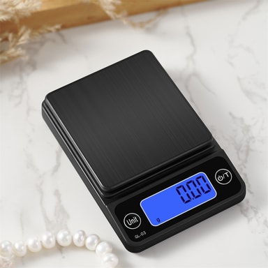 Praktisk målebrett: Det medfølgende målebrettet gir en stabil plattform for å kunne veie små gjenstander, noe som gjør prosessen problemfri.
