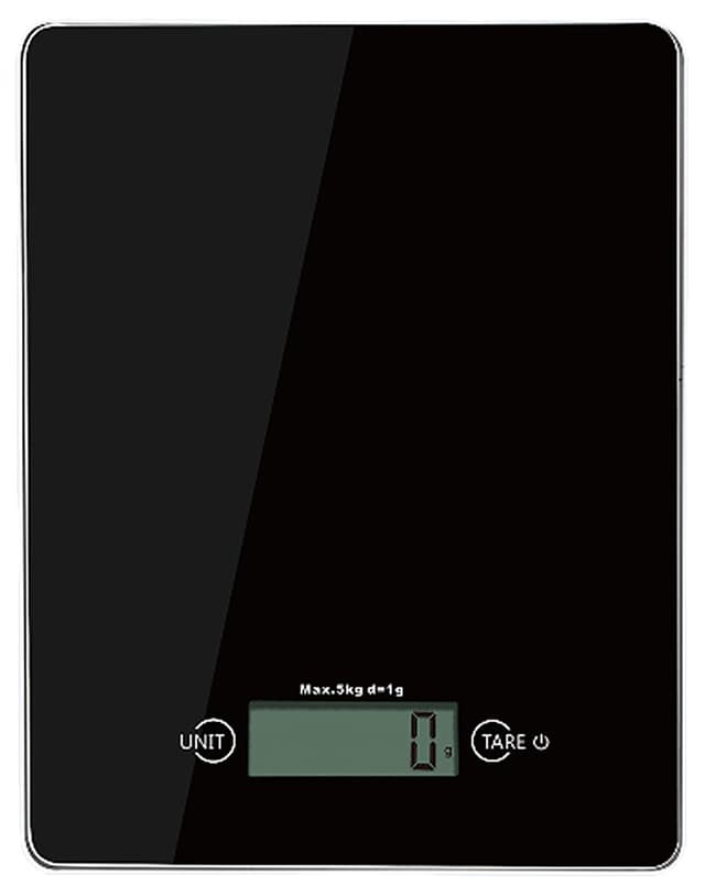 Logik LKSBLK16E er en pen kjøkkenvekt med praktiske funksjoner og kapasitet på inntil 5 kg.