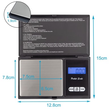Den lille lommevekten passer veldig godt i lommen takket være til den delikate designen er også utstyrt med en beskyttende klaff.