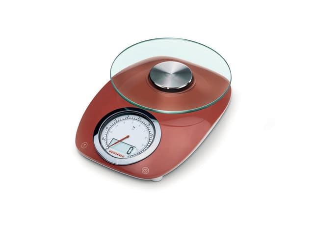 Analog og digital veiing: Vekten vises med klassiske analoge siffer og på en opplyst, digital LCD-skjerm. Du kan veie opptil 5 kg og velge mellom gram og ounces.
