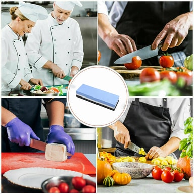 Knivsliperen har to sider, en for å gjøre hakket og glitch flatere, den andre for å skjerpe kantene. Med silikonbunn som sørger for at steinen festes på ett sted under knivslipingen.