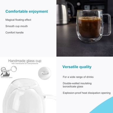 MATERIALE: Det dobbeltveggede borosilikatglasset skiller seg ut fordi det er laget av varmebestandig materiale. Materialet skaper en elegant effekt.