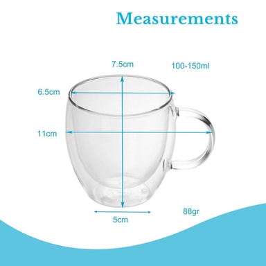 4x termisk glass med håndtak 100-150ml varmebestandig for cappuccino, te, vann etc.