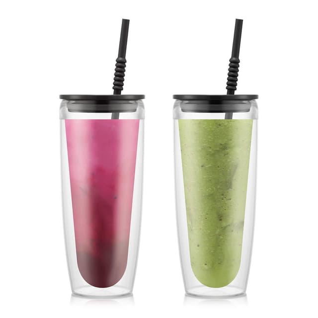 • Bodum 2 dobbeltveggede glass,0.7l, 24 oz, med lokk og sugerør PAVINA TO GO 0.7 L