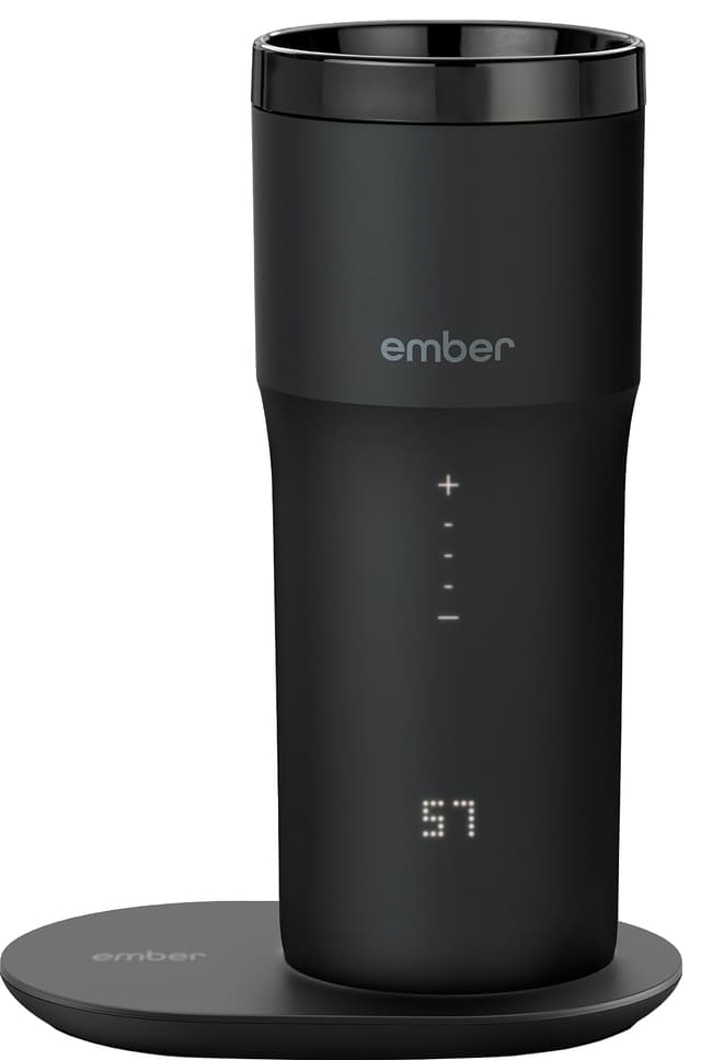 Nyt kaffe eller te når du er på farten med Ember Travel keramisk kopp TM191200EU. Touchskjermen lar deg tilpasse din foretrukne temperatur og holder drikket varmt i opptil 180 minutter. Koppen har også en LED-indikator og en automatisk søvnfunksjon. I tillegg kan du skape ulike forhåndsinstillinger med den smarte Ember-appen.