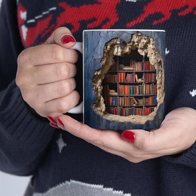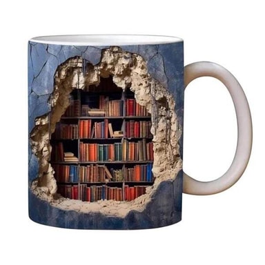 Elegant krus med 3D-effekt - perfekt for bokelskere