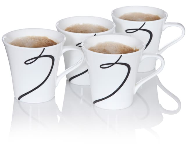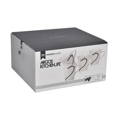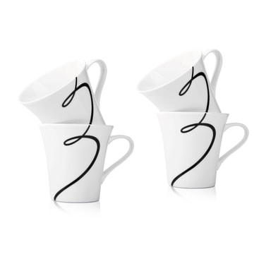 Argos - krus 4 stk hvit,svart dekal d9,5 350ml porselenLes mer om produktet