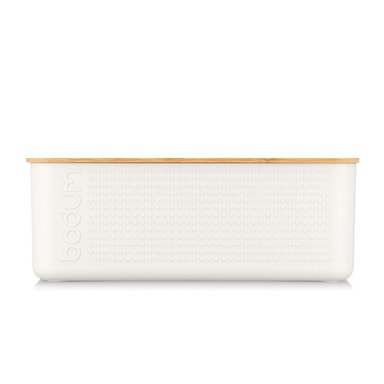 Denne store brødboksen gir også bra plass til oppbevaring på benkeplaten. Laget i fargerik BPA-fri plast. Den har et bamboo lid that doubles up as a cutting board og som serveringsbrett til brødet ditt. Den har også spor som fanger opp brødsmulene.