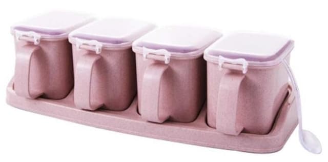 Små praktiske bokser der man kan oppbevare matvarer og krydder. Settet inneholder 4 bokser med lokk og 4 tilhørende skjeer.