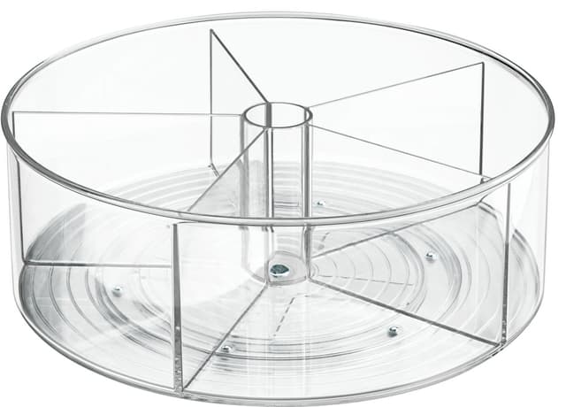 Lazy Susan med kant og inndelinger som kan brukes på kjøkken eller bad eller andre steder hvor man trenger praktisk oppbevaring. Den er åpen på toppen som gjør det lett å hente ut produkter. Diameter på 22,9 cm. BPA-fri. iDesign er markedsledende på organiseringsprodukter til hus og hjem. Produktene selges i over 100 land. De kombinerer praktiske enkle design med høy kvalitet.