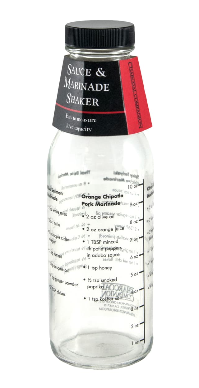 Glass saus og marinade shaker inneholder lett å måle markører for unser og fire marinade oppskrifter. Shaker har en 10 oz. kapasitet.Les mer om produktet