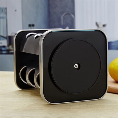 Krydderstativ i svart rustfritt stål. 12 stk matchande bokser å oppbevare krydder i inngår og gjør hyllen til en flott innredningsdetalj.