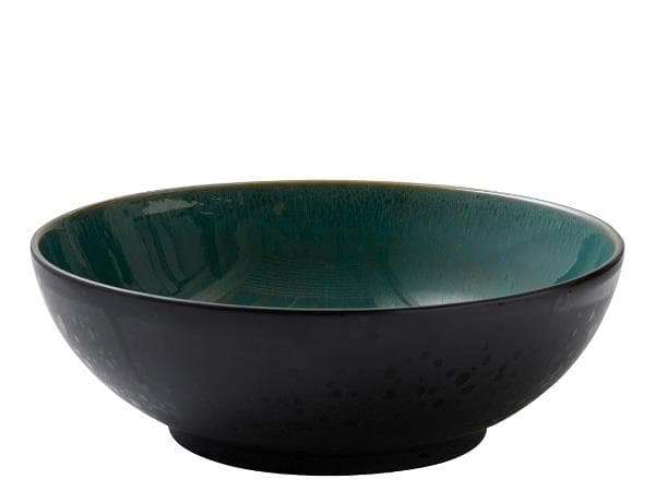 Bitz stor salatskål i svart steintøy med en glansfull, grønn glasur på innsiden kombinert med matt, reaktiv glasur på utsiden. Skålen er perfekt til store salater og anretninger. Velegnet for oppvaskmaskin, mikrobølgeovn og ovn opp til 220 grader. Diameter 30 cm, høyde 10 cm.