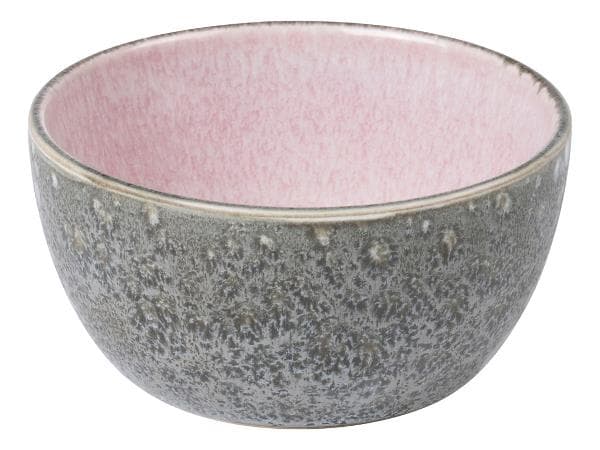 Bitz skål i steintøy med matt grå glasur på utsiden og blank rosa innside. 10 cm i diameter, høyde 5 cm, en størrelse med uendelige bruksmuligheter, bruk den for eksempel til oliven, nøtter og snacks, dip og dressing, sjokolader, bær og fruktbiter.
