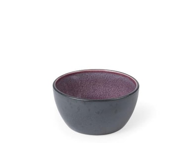 Bitz skål i steintøy med matt svart glasur på utsiden og blank lilla innside. 10 cm i diameter, høyde 5 cm, en størrelse med uendelige bruksmuligheter, bruk den for eksempel til oliven, nøtter og snacks, dip og dressing, sjokolader, bær og fruktbiter.