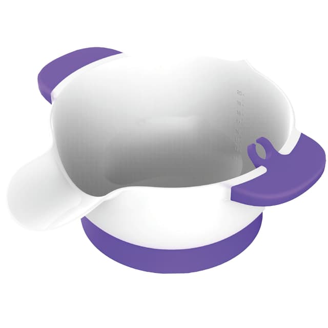 Stabil bunn: Bollen er designet med en stabil base i silikon slik at man unngår at den velter. Håndtakene er også laget i silikon for å gi barna et stødig grep rundt bollen.