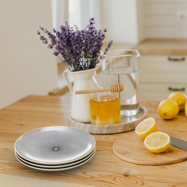 Tallerkenene er runde og ganske enkle for å utnytte overflaten optimalt. Samtidig er de også veldig stilige og passer til enhver borddekorasjon og ethvert interiør.
