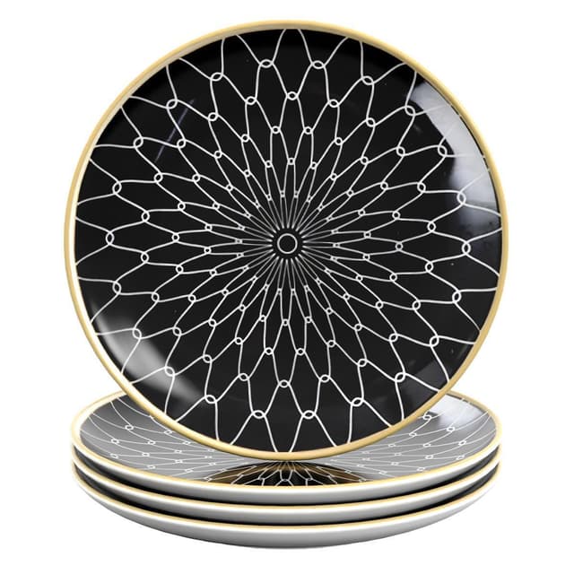 Porselensmaterialet er varme- og kuldebestandig. Leveringsomfang: 4 tallerkener