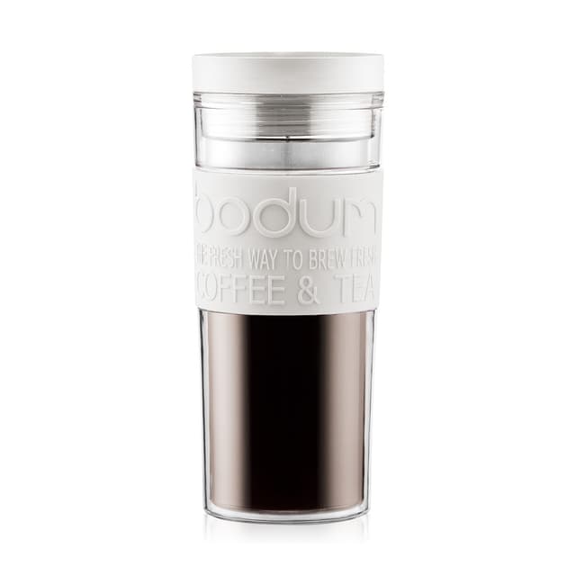 Dagens hektiske livsstil får oss til å gå glipp av våre betryggende daglige rutiner altfor ofte. Vel, det å nyte kaffen vår står ikke lenger på listen. BODUM dobbeltvegget termokrus blir med deg der du drar og kommer i perfekt størrelse, farge og materiale for alle dine gjøremål. Holder garantert de varmene drikkene dine varme og de kalde drikkene kalde. La oss skåle for det. Advarsel: Pass på at kruset står rett vei til enhver tid. • Laget i Europa • Plast, gummi, silikon • Mengden væske som kommer ut om gangen, kan justeres med skrulokket • Tåler oppvaskmaskin