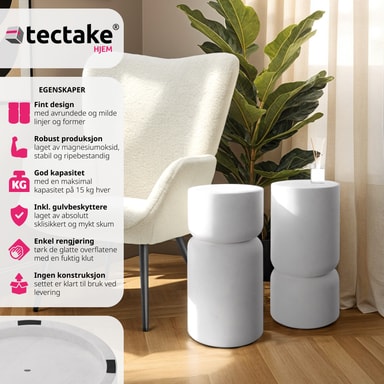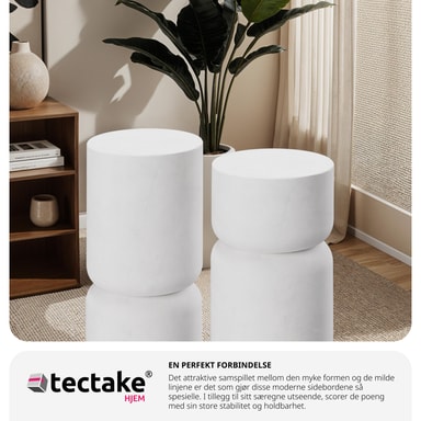 Oppdag sidebordene Amine fra tectake i det praktiske settet med 2 stk – det perfekte tillegget for en moderne stueatmosfære.
