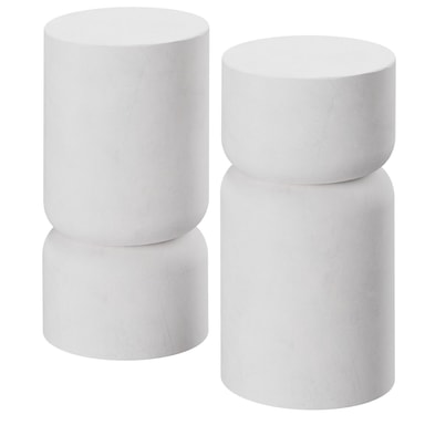 De mykt avrundede linjene i kombinasjon med de myke formene i steinutseende gir hjemmet ditt en innbydende og harmonisk atmosfære. Enten som en praktisk hylle ved favorittplassen din eller som nattbord på soverommet – settet er allsidig og passer perfekt inn i enhver innredningsstil.