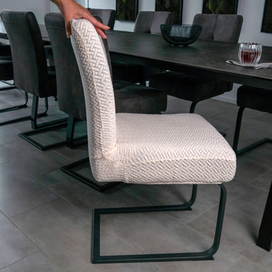 Takket være det fleksible, tøyelige materialet tilpasser den seg formen og størrelsen på stolen. Fargen og designet passer inn i alle typer interiør, enten privat eller offentlig.