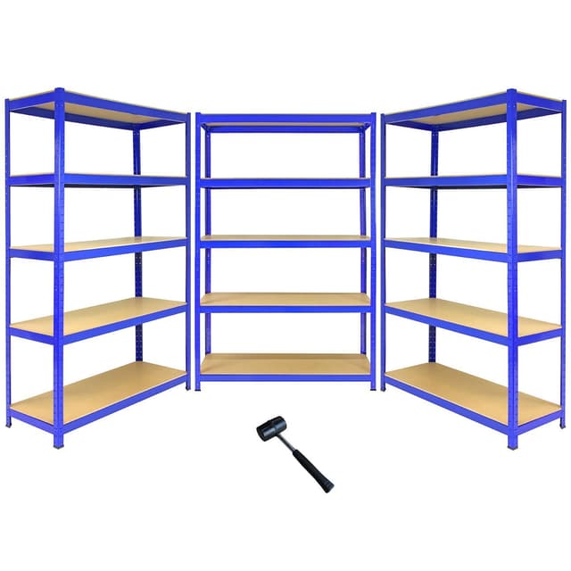 3 T-Rax stålhyller uten blå skruer 120 cm bred og gummihammer