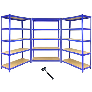 3 T-Rax stålhyller uten blå skruer 120 cm bred og gummihammerLes mer om produktet