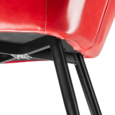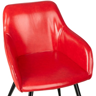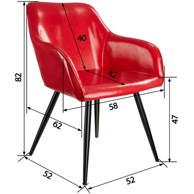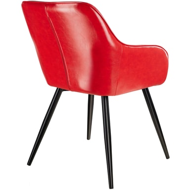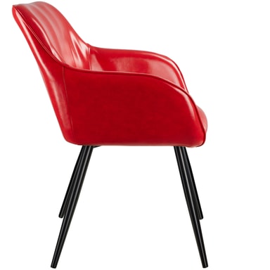 Som fan av moderne og smakfulle møbler er den smakfulle Marylin-stolen fra tectake et absolutt must. Takket være sine buede linjer skjærer møblet en fin figur både som solist eller som en del av en gruppe. Den komfortable polstringen under dekselet i kunstskinn sikrer komfortable sitteplasser mens du prater og slapper av. Fire runde rørformede ben danner den spenstige rammen og avrunder fordelene med denne polstrede stolen på en dyktig måte. Stolen passer perfekt inn i hjemmet ditt i stuen, på kjøkkenet eller på kontoret.