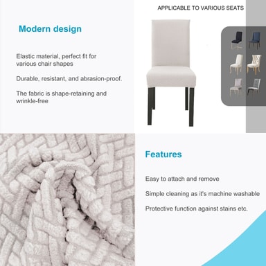 Det elastiske stoltrekket garanterer rask stramming og godt grep, samtidig som at selv gamle stoler ser ut som nye. Samtidig beskytter den mot støv, flekker, riper og falming over tid.