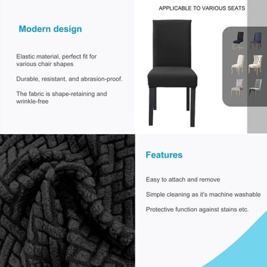 Det elastiske stoltrekket garanterer rask stramming og godt grep, samtidig som at selv gamle stoler ser ut som nye. Samtidig beskytter den mot støv, flekker, riper og falming over tid.