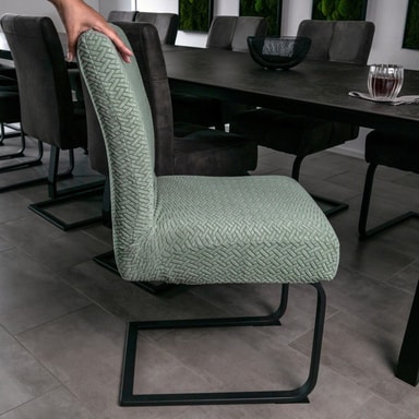 Takket være det fleksible, tøyelige materialet tilpasser den seg formen og størrelsen på stolen. Fargen og designet passer inn i alle typer interiør, enten privat eller offentlig.