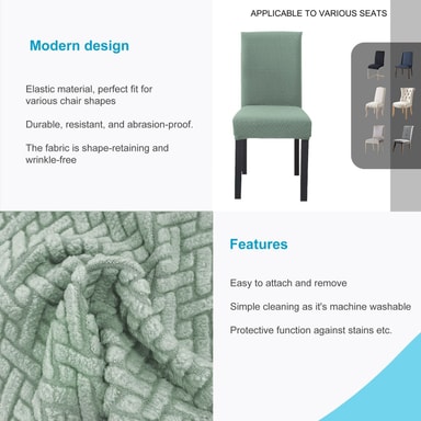 Det elastiske stoltrekket garanterer rask stramming og godt grep, samtidig som at selv gamle stoler ser ut som nye. Samtidig beskytter den mot støv, flekker, riper og falming over tid.