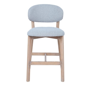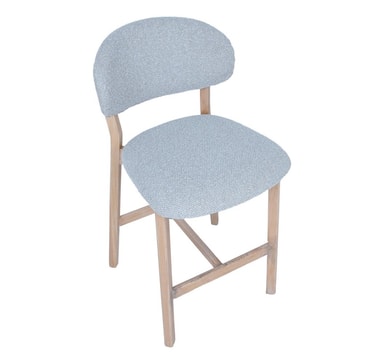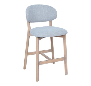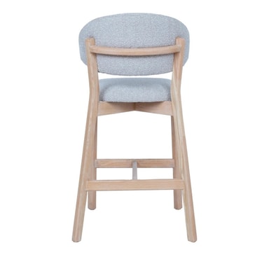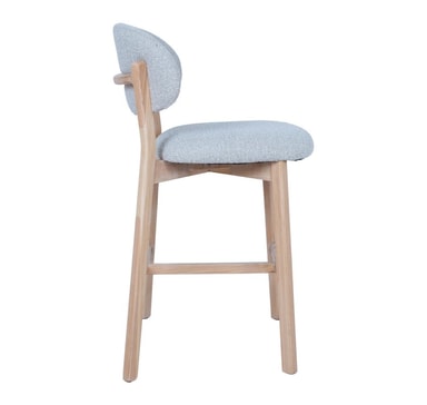 Barstol BLESS lys grå. Setet og ryggstøtten på stolen og dekket med polyesterstoff. Stolrammen er laget av heltre eik. De totale målene på stolen er 49x57xH98cm. Setebredde 46cm, setedybde 45cm, setehøyde 68cm. Fotstøtte høyde fra bakken 27cm. Vektgrense 120 kg.