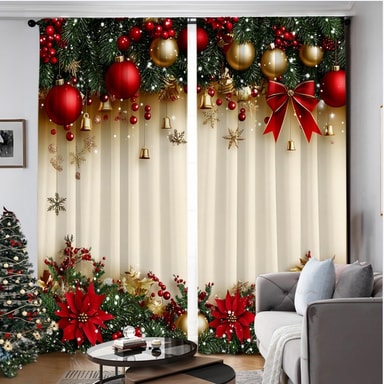 • Europeiske Julegardiner (Sett med 2) - Julevindusgardiner i Polyester M