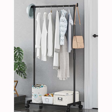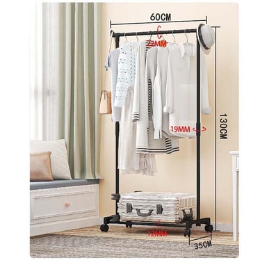 Allsidig oppbevaringsløsning: Dette flyttbare klesstativet er en ideell løsning for å organisere klær i leiligheter, sovesaler eller soverom. Det tilbyr en praktisk måte å henge opp klær, jakker og hatter, samtidig som det gir ekstra oppbevaringsplass for sko eller vesker nederst. Den enkle designen gjør det enkelt å flytte rundt etter behov, og det robuste materialet sikrer at stativet kan bære en betydelig mengde vekt. Perfekt for de som trenger en fleksibel og effektiv måte å holde orden på klærne sine.