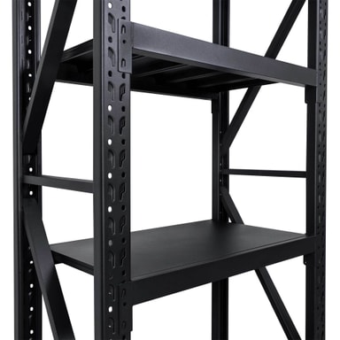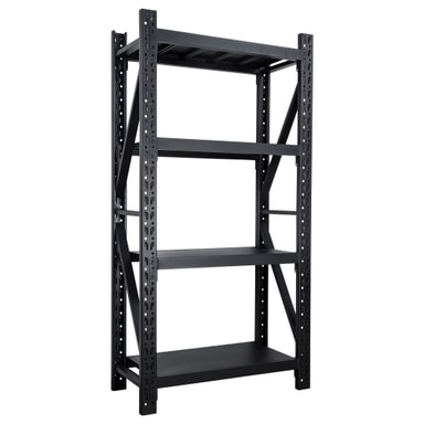 Fornorth Oppbevaringshylle i svart stål med justerbar høyde og total kapasitet på 3200 kg, perfekt for garasje, kontor eller lager.Les mer om produktet