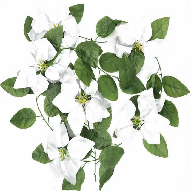 Julekransen med vakre kunstige juleblomster er 1,8 meter lang og en fin dekorasjon i adventstiden og julen.