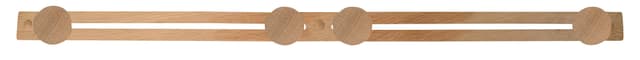 Smart danskdesignet knaggrekke i eiketre til montering av runde treknotter Knaggrekken leveres inkludert 4 stk. Ø45 mm knotter i eiketre Mål: 58,5×3,5×1,5 cm