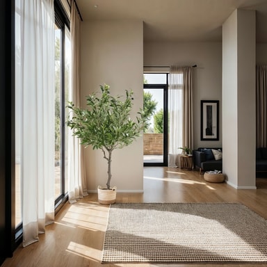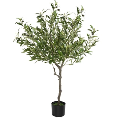 Det tette volumet gir kunstplanten et naturtro utseende i kombinasjon med de delikate, detaljerte bladene og de naturtro olivenene. Samtidig drar du nytte av de lettstelte egenskapene: Ingen uttørking, ingen gjødsling – oliventreet forblir i perfekt stand i årevis.