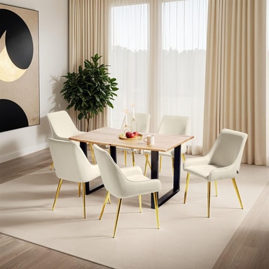 Den myke polstringen med høytetthetsskum garanterer førsteklasses komfort – selv ved lange middager med venner og familie. I kombinasjon med det silkemyke fløyelsbelegget gir disse stolene en spesielt luksuriøs sittefølelse - det perfekte valget for stilbevisste mennesker.