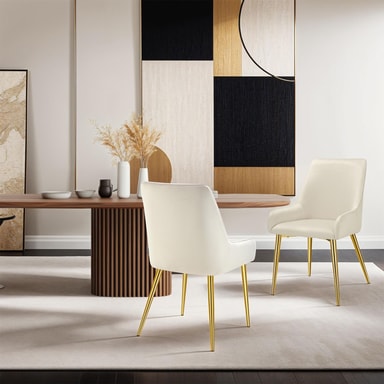 Stolene Avane fra tectake forener eleganse og komfort i ett møbel. Det luksuriøse fløyelsbelegget gir disse stolene et sjarmerende utseende, og en behagelig følelse mot huden – det ideelle tilskuddet til din spisestue eller stue.