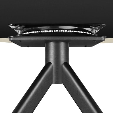 Det edle utseendet understrekes av de slanke, skråstilte stålbeina, som lover høyeste stabilitet og en enorm belastningsevne. Takket være de gulvskånende og sklisikre plasthettene står designstolen alltid trygt og stabilt på plass.