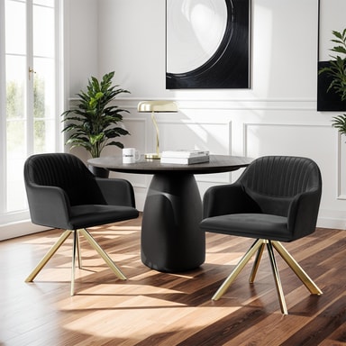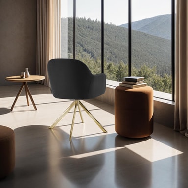 Den store sittebollen med gjennomgående arm- og ryggstøtte sørger med det ekstra fine fløyelstrekket og den høydensitets skumgummipolstringen for ren hygge og inviterer til å bli sittende. I tillegg kan stolene dreies 360°, noe som gir maksimal bevegelsesfrihet – perfekt for lange middager eller avslappende timer i stuen.