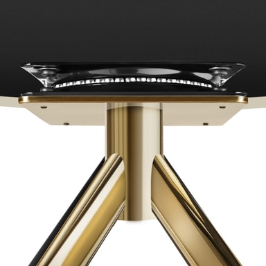 Det edle utseendet understrekes av de slanke, skrått sammenløpende stålbeina, som lover høyeste stabilitet og en enorm belastningsevne. Takket være de gulvskånende og sklisikre plasthettene står designstolen alltid trygt og stabilt på sin plass.