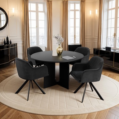 Takket være den romslige sitteflaten, kontinuerlig rygg- og armlene samt høydensitetsskum-polstring, nyter du maksimal komfort og optimal støtte for sittestillingen din – perfekt for lange middager eller sosiale sammenkomster. Det ekstra fine fløyelstrekket sørger ikke bare for en supermyk følelse, men også for et elegant utseende.
